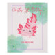 In the centre of the invitation, a delightful pink axolotl takes the spotlight. This whimsical creature is expertly illustrated, featuring large, expressive eyes that gleam with joy and curiosity. The axolotl is adorned with a tiny, pastel pink birthday party paper hat that perches atop its head at a jaunty angle. The hat is adorned with colourful polka dots and a tiny elastic string under its chin, ensuring it stays securely in place during all the birthday festivities. Edit all text in the design tool!