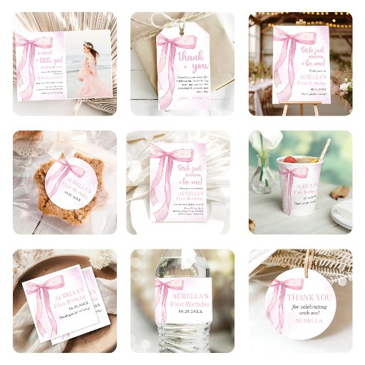 Girl Pink Bow 1st Birthday Party Water Bottle Label