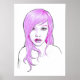 Coloured pencils and pen drawing. Cartoon portrait of a pink-haired girl.