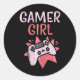 Girl Pink Game Controller Cute Video Gaming Women Classic Round Sticker