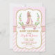 Girl Pink Gold Floral Bunny Rabbit Baby Shower Invitation