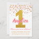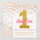 Girl Pink Gold Glitter Confetti First Birthday Invitation