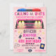 Ready for a cool police birthday party? This design features a watercolor police car, handcuffs, flashlights, stars, and cool, colourful" Calling all units" typography. All text is editable on this birthday invite and budget-friendly postcards are available too! This design is for any age, gender-neutral, and fully customisable for 1st and 2nd birthday and older kids. Find matching items in my shop.