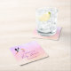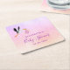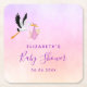 Girl pink purple rose gold cute stork baby shower square paper coaster