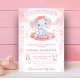 Girl Pink watercolor elephant baby shower Invitation