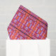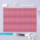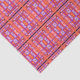 This art by me, Kristie Hubler, on this tissue paper, is an abstract, feminine type of folk art, with wiggles, swirls, curves, spirals, dots, and flowers inside a plaid layout, in pinks, salmon, orange, gold, deep periwinkle iris, aubergine or dark reddish brown