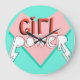 Girl Power: Cute Graphic Slogan Large Clock