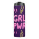 Girl power movement. Feminist slogan grl pwr on violet background. Feminist movement, protest action, girl power. Vintage illustration