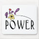 Girl Power T-shirts, tote bags, buttons, mugs, stickers, cards, and more with purple and black text, a red heart, and a yellow flower!