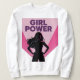 The image displays a graphic with the phrase "GIRL POWER" in bold, capitalized letters at the top. Below the text is a stylized silhouette of a person with long hair and hands on hips, suggesting confidence. The background is pink with lighter pink rays emanating from behind the figure, giving an empowering and dynamic feel to the design. This image is represented by a message of empowerment and strength. The image shows a graphic with the phrase "GIRL POWER" in capital letters and in bold at the top. Below the text is a stylized silhouette of a person with long hair and hands on his hips, suggesting confidence. The background is pink with lighter pink rays emanating from behind the figure.