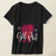The shirt is really cute. Love the little, long haired chi. The fit is just right. I got a small (5'5" - 112), and it's not body hugging which is what I prefer, but not overly loose. Hope it doesn't shrink. I like the style, too; prefer a V neck. The only thing I would change is the position of the pup. As is he is directly on my left breast. It would've looked better just a bit up toward the shoulder. The design is fine. It's a sweet chi, and I hope it stays that way without drying out or cracking in the wash. It looks as if it should last. I'm pleased. Thanks for the long hairs!!