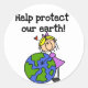 If you're concerned about our environment, looking for a great T-shirt, button, stickers, or other items to promote the environmental awareness message, you'll love our girl stick figure hugging the eart design that reads "Help Protect Our Earth"!
