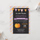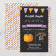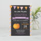 Pumpkin Birthday Invitation for Girl. Little Pumpkin Fall Birthday Invite. 1st First Birthday. Orange and purple stripes, chalkboard background. For further customisation, please click the "Customise it" button and use our design tool to modify this template.