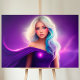 Beautiful blonde girl with blue eyes in an elegant purple dress, design in purple pink and white shades with a neon effect. (PLEASE! - See also other new collections for more choices)