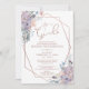 Elegant baby girl baby shower invitation with beautiful watercolor wildflower floral bouquets in shades of purple, violet, lilac, blush, peach, dusty blue and greens accented with a rose gold geometric frame and text colour with the title IT'S A GIRL in a modern, elegant script font. ASSISTANCE: For help with design modification or personalisation, colour change, resizing, transferring the design to another product or if you would like coordinating items, contact the designer BEFORE ORDERING via the Zazzle Chat MESSAGE tab below or email makeitaboutyoustore@gmail.com.