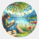 Girl Reading a Book under a Tree with a Sleepy Cat Classic Round Sticker