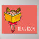 A cute cartoon girl reading a book design with customisable text for a book loving young girl's room. Cute graphic in colourful style. Suitable for a girl who loves reading.