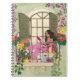 Girl reading on summer balcony with her cats illustration. Original artwork by Caroline Bonne Müller.