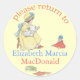 A Vintage style bookplate - little girl reading to her doll. Just add the name - you can change the colour and style of the font if you want! Go to Customise - change the font colour or size, make this one line only, make it yours! You can also remove "please return to" and type in "ex libris" or "from the library"... whatever you'd like! This design is from The Real Mother Goose book, original graphic courtesy of OldBookArt.com, edited by friendly spirit.