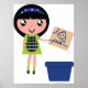 Girl Recycling Pizza Box Fun Eco-Friendly Poster