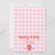 Girl's berry sweet themed first birthday invitation template featuring a white daisy and pink and red strawberries. This berry first birthday birthday invitation also features a pink plaid pattern and a white arch. Ideal for a girls summer birthday party.