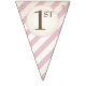 Little Pumpkin Banner - This retro design garland is perfect for girl First Birthday Party or Baby Shower decor. The retro shabby chic design features a watercolor pumpkin with pink stripes on a shabby chic background. Change the wording to whatever suites your needs. These pink decorations can also be used for nursery decor and wall hangings. It features the words "Happy Birthday" spelled in a modern font. To see coordinating designs visit VG Invites at www.zazzle.com/vginvites