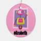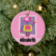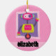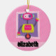 Girl Robot; Pink & White Stripes Ceramic Tree Decoration