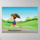 A girl running along a track in the countryside. This design looks really effective on these Poster