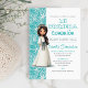 A cute First Communion invitation designed with a gorgeous girl illustration. This Religious Catholic card is perfect for sharing your daughter’s First Holy Communion celebration with loved ones.