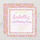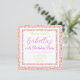 Girl’s Pretty Summer Pink Spring Green Birthday Invitations. A fun, colorful square invitation card for your daughter to give out to their friends and family to invite them to their birthday party. Change the text to your own using the Personalize button. Or edit the colors and layout in the design tool. The colors of the text are drawn from the colors of the geometric patterned border. The colors of the border work for birthdays in Spring and Summer. The text contains all the important details, such as the birthday child’s name, age, time and date, and location of the party venue. A joyous invitation for an important celebration. The back of the invites show a pretty pattern, that can be kept as a lovely wall decoration or decorative keepsake by the recipient. Download as a digital invite.
