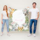 Girl safari baby blanket with adorable baby safari animals with pretty blush pink flowers on a choose your own colour background. This safari baby blanket can be personalised with the text of your choice.