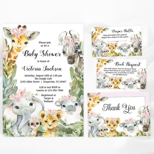 Girl safari baby shower chip bag wrappers with cute baby safari animals with pretty pink flowers background. You can customise this adorable girl baby shower chip bag wrapper by simply adding your details. To assemble, wrap the flyer around your chip or snack size bag and secure with double sided or regular tape. Fits 1 ounce chip or snack bag - OR - you can leave the top open, slip in a sandwich bag, and add your own bulk snack mix and seal the top.