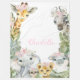 Girl safari blanket with adorable baby safari animals with pretty blush pink flowers on a choose your own colour background. This safari baby blanket can be personalised with the text of your choice.