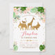 Modern girl safari design for the glam safari party. Decked with gold foiled jungle animals - elephants, lion, giraffe and monkey - framed with an arch of pink green tropical watercolor floral foliage leaves. Perfect for your wild one!