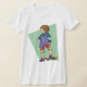 A girl skateboarder out of her skateboard in full gear. This design looks really effective on this womens T-shirt