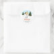 Say thank you in style with this ski-themed sticker, designed by Destei. Featuring a watercolor illustration of a girl skiing down snowy slopes with green fir trees under a light blue winter sky with falling snow, the sticker has space for a custom message, making it a fun and festive way to show your gratitude at a ski birthday celebration.