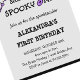 Girl Skull Spooky one Halloween 1st birthday Invitation : This Halloween 1st birthday invitations in purple and grey with theses cute skulls (skeleton), ghost, bat, spider cobwebs with the text " It's my booday / boothday on the back, is for baby girl (kids / children). (ex: She is a Spooky one. Join us for the spooktacular Alexandra's first birthday XXXXX October XX... )This halloween first birthday invitation is great for spooky birthday. You can personalise this girly halloween birthday party invites with all your informations. Perfect for halloween 1st birthday invites, halloween first birthday invitations, 1st birthday party, halloween first birthday, girl birthday party, october birthday, girl 1st birthday... HALLOWEEN THEME ( the spooky one birthday invitations, spooky one birthday )