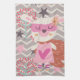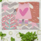 A white bunny rabbit superhero in a pink mask and dress with a heart, a brown cape, and striped socks on a background of grey and white chevron stripes, pink, deep wine, and red stars, and blue and red trees on products for the home, office, and personal use. This cute Girl Superhero Bunny design is great for kids and adults who love fun, colourful, whimsical designs!