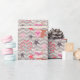 A white bunny rabbit superhero in a pink mask and dress with a heart, a brown cape, and striped socks on a background of grey and white chevron stripes, pink, deep wine, and red stars, and blue and red trees on products for the home, office, and personal use. This cute Girl Superhero Bunny design is great for kids and adults who love fun, colourful, whimsical designs!