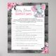 Rustic Cute Baby Girl Elephant Survey Says Baby Shower with pink watercolor flowers and wooden background and customisable text. Digital downloadable game or printed game card.