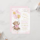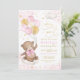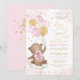 Girl Teddy Bear Pink Gold Balloons 1st Birthday Invitation