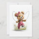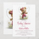 Celebrate the imminent arrival of your bundle of joy by inviting your friends and loved ones to your baby shower with this invitation featuring a teddy bear wearing pink overalls playing jump rope. The customizable text allows you to effortlessly add your name, date and time of the celebration, and the RSVP information. A variety of paper types and corner styles are available for your unique invitations, along with the option to download if you prefer a digital format.