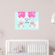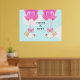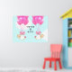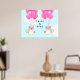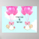 Cute twin girls baby shower decoration or birth announcement featuring sweet girl twins, balloons and creative slogan.