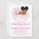Drive by baby shower invitation with adorable African baby girl with cute afro hair on a pretty pink and gold watercolor cloud background. This online baby shower invitation is easily customised for your event with the text of your choice. All text can be changed to say what you prefer.