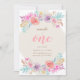 A watercolor design in pastel florals. Ideal for garden parties, shabby chic decor, boho bohemian parties, elegant script. With modern Geometric shape. Girl Watercolor Flowers First Birthday Invitation. one, 1, first birthday