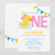 Girl Watercolor Rubber Duck 1st Birthday Party Invitation