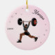 Girl Weightlifting Working Out Name & Year Pink Ceramic Tree Decoration