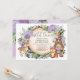 She's turning a WILD ONE! Celebrate your little one's 1st birthday with this whimsical woodland themed birthday invitation. The design features a group of adorable forest animals (bear, fox, deer, owl, racoon), pretty purple flowers and lush watercolor greenery.