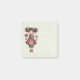 Sticky notes with a cute retro image featuring a whimsical girl with rosy cheeks and flowers in her hair. Carrying a green frog doll.