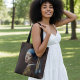This tote bag features a cross-stitched replica of the renowned "Girl with a Pearl Earring" oil painting by Dutch Golden Age painter Johannes Vermeer, circa 1665. The painting portrays a European girl adorned in an "exotic dress," an "oriental turban," and a prominent pearl earring. The original painting is housed in the Muriithis collection in The Hague, Netherlands. The distinctive pattern and subject matter make this a uniquely enjoyable and sophisticated gift for art enthusiasts, book readers, and pearl earring aficionados.